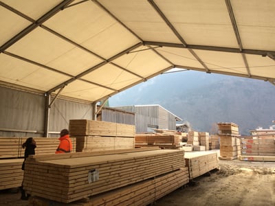 Une solution de construction “classique” avait été envisagée, mais la structure modulaire a été privilégiée pour sa rapidité de mise en place et son coût maîtrisé. Une première structure d’environ 200 m² a été installée pour la protection des équipes travaillant en extérieur. Une seconde structure d’environ 300 m² est venue compléter le dispositif pour couvrir un stockage saisonnier, en lien avec des besoins grande distribution. Les structures ont d’abord été prises en location sur plusieurs années, avant d’être rachetées, signe d’un usage durable sur site et d’une protection jugée satisfaisante pour les matériaux stockés.