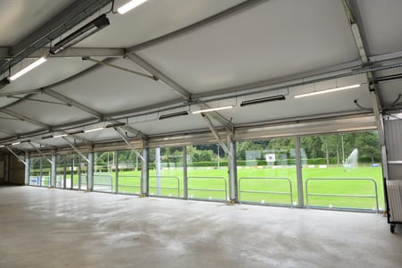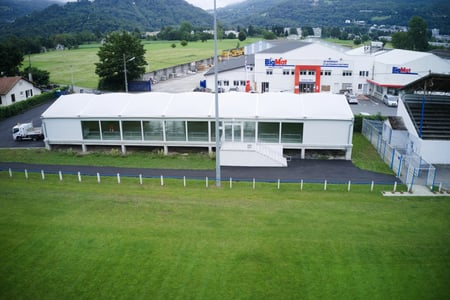 Locabri a réalisé une structure de 350 m2 au stade Jean-Bégaries pour offrir à la commune un espace couvert dédié à l’accueil de manifestations.